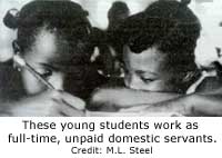 Restavèk: Four-year-old Servants in HaitiBy J. P. Slavin Rivière Froide -- When she was only ten years old, the harsh realities of rural Haitian life irrevocably changed Celine Bouchon's* childhood. Her family was offered a bone-chilling deal from a local businessman: release Celine to his care and he would arrange for her to work as a live-in domestic servant in the far off capital of Port-au-Prince. Celine would not be paid, he said, but she would go to school.